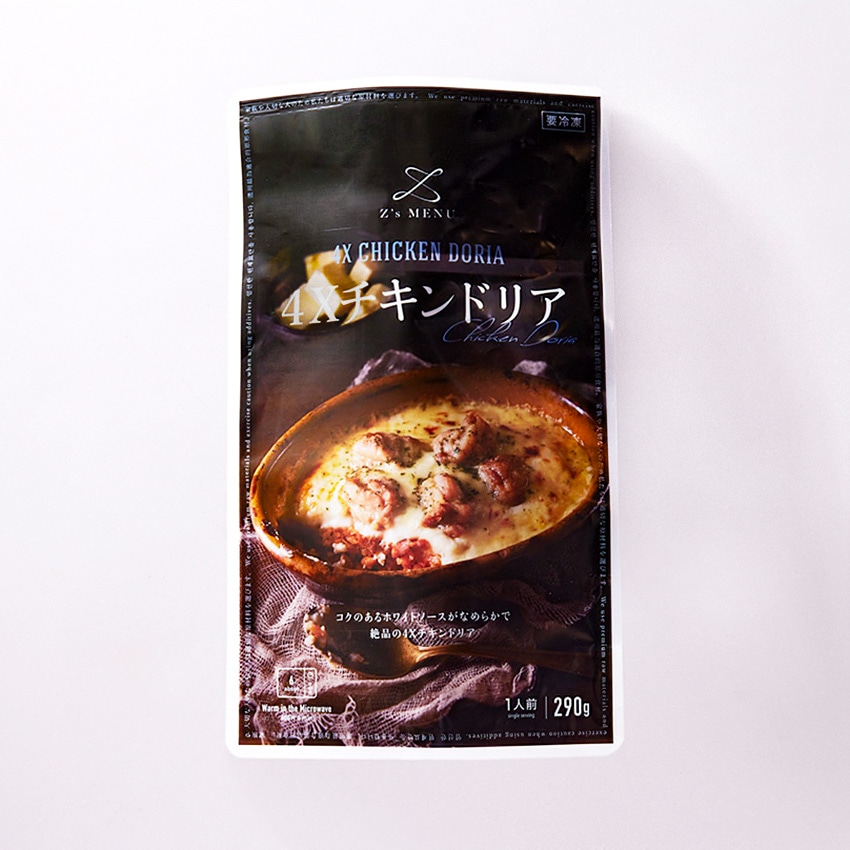 自社ブランド鶏「4Xチキン」もも肉とジャージー牛乳を使用したチキンドリアです。