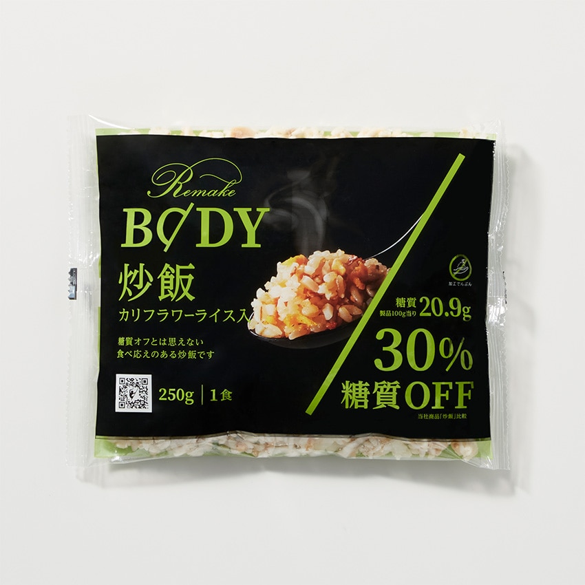 カリフラワーライスを約34%配合した低糖質炒飯です。