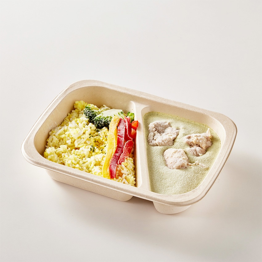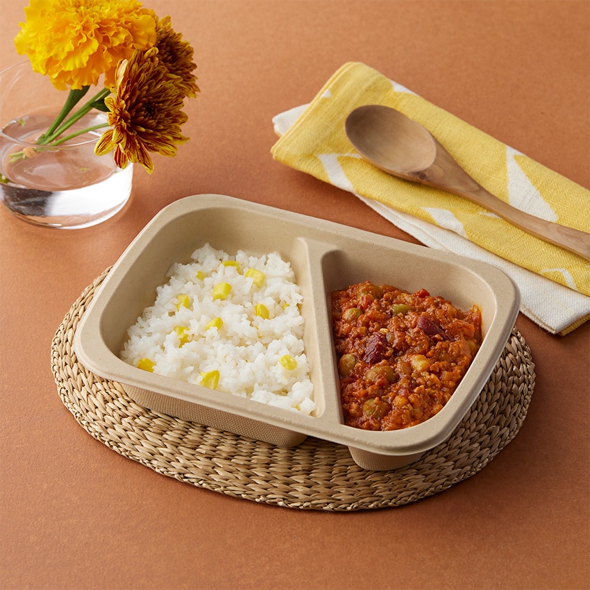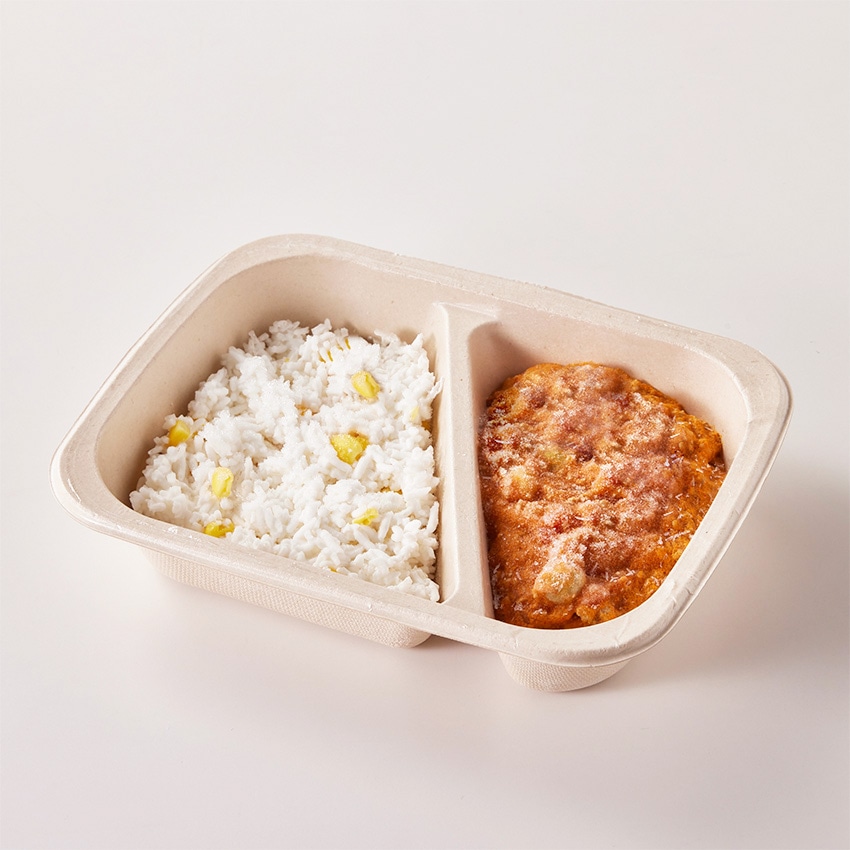 ジャスミンライスにコーンを混ぜたコーンライスと共に、ワンプレートのお弁当に仕上げました。