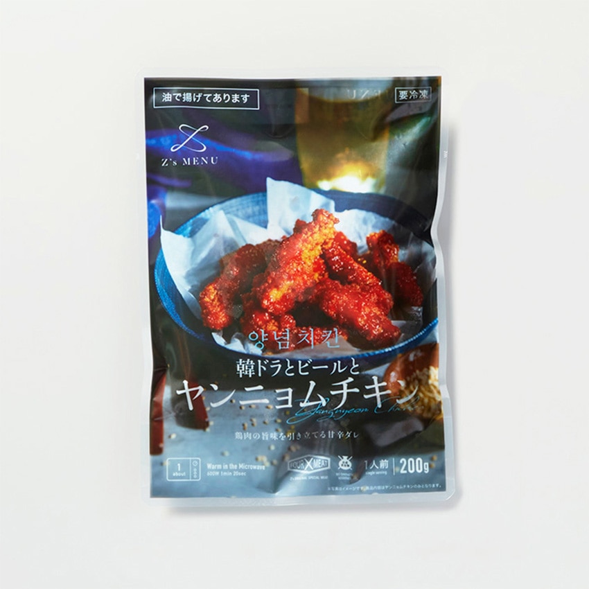 甘辛いタレを絡めたフライドチキンです。食べやすいスティックタイプなので、韓国ドラマを見ながらビールを片手に、召しあがりいただきたいひとしなです。