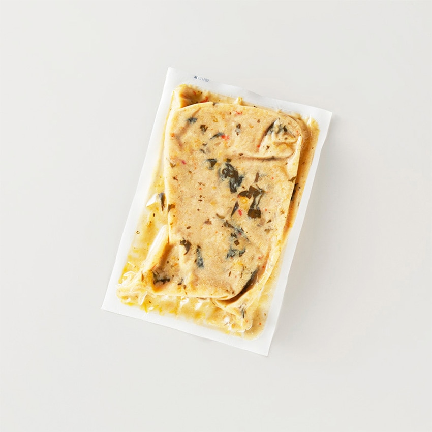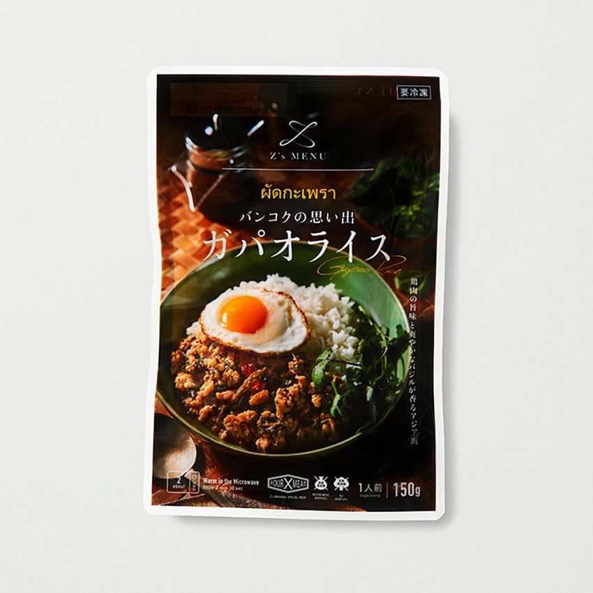 自社ブランド鶏「4Xチキン」のむね肉に、本場タイのガパオには欠かせないプリッキーヌ(唐辛子)、ホーリーバジルを入れて仕上げました。