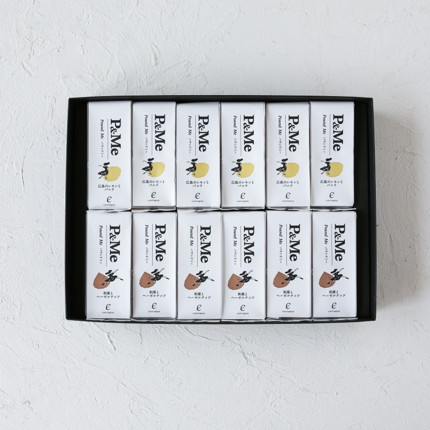 「際立つ酸味が特徴の広島県産レモンと心地良い香りのバニラ」「香ばしく食感の楽しい和栗とナッツ」2種のフレーバーが入ったパウンドケーキセットです。