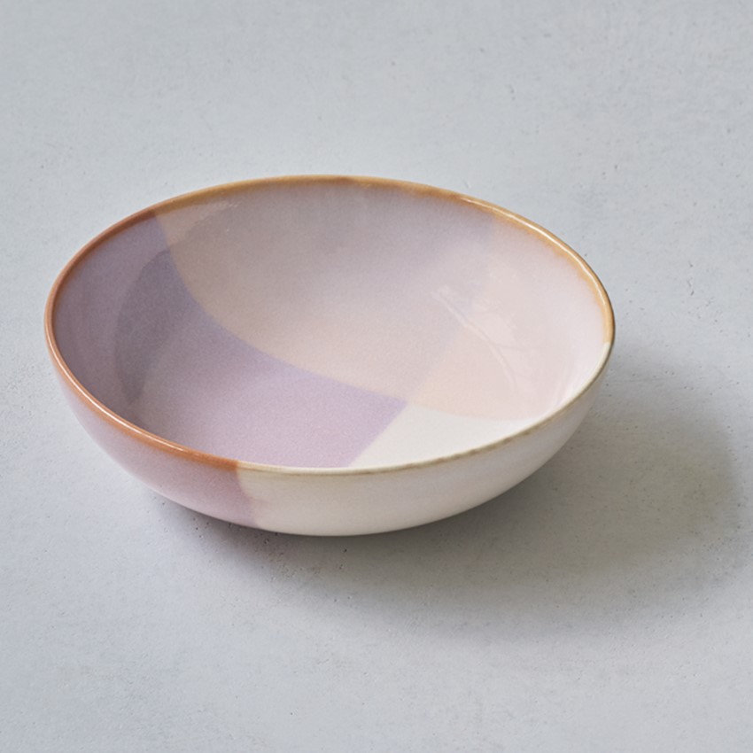 【商品説明文】異なる2色の化粧土を重ねる萩焼の伝統技法「掛け分け」で、新たな趣を表現しています。その優しい色の変化は、移りゆく四季のようでもあり、また豊かで彩りあふれる時を重ねてほしいという願いが込められています。ピンク×パープルの上品な色使いのボウルです。