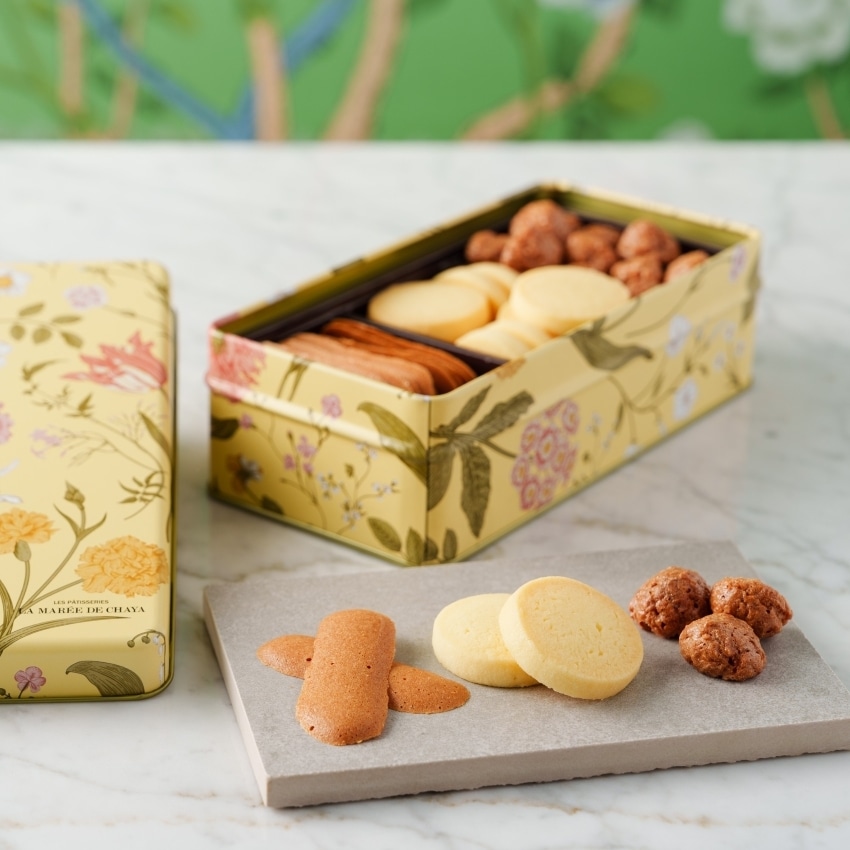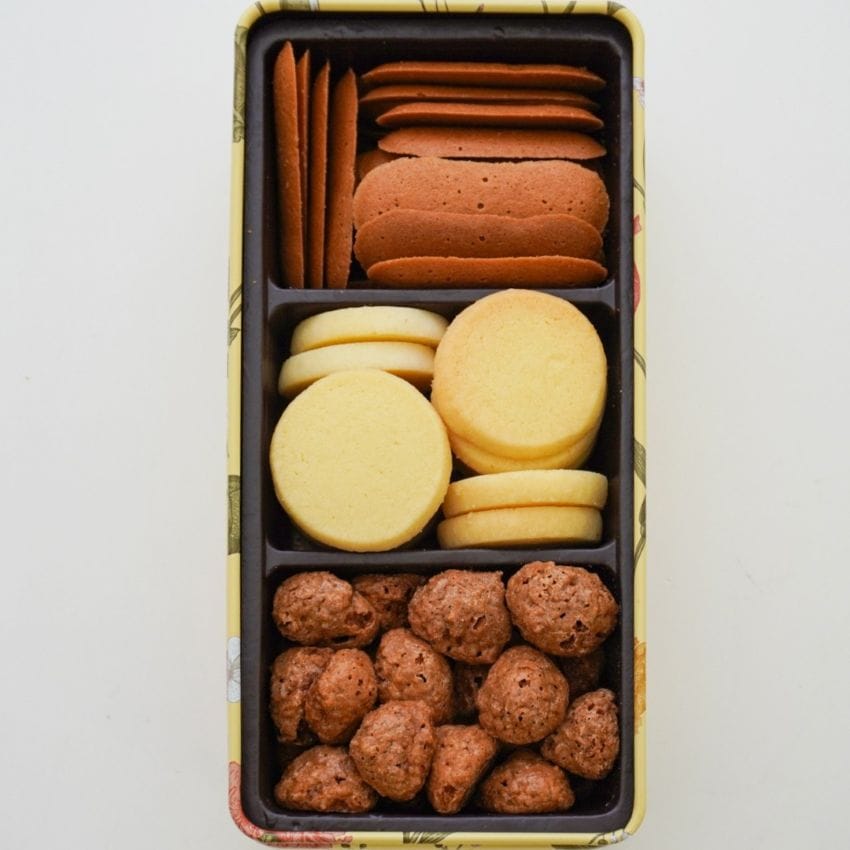ココナッツ風味の「ミニ コンゴーレ」、バニラが香る真っ白な「オスティ」、こだわりのはちみつで作った「ラング ド シャー」の3種入りです。