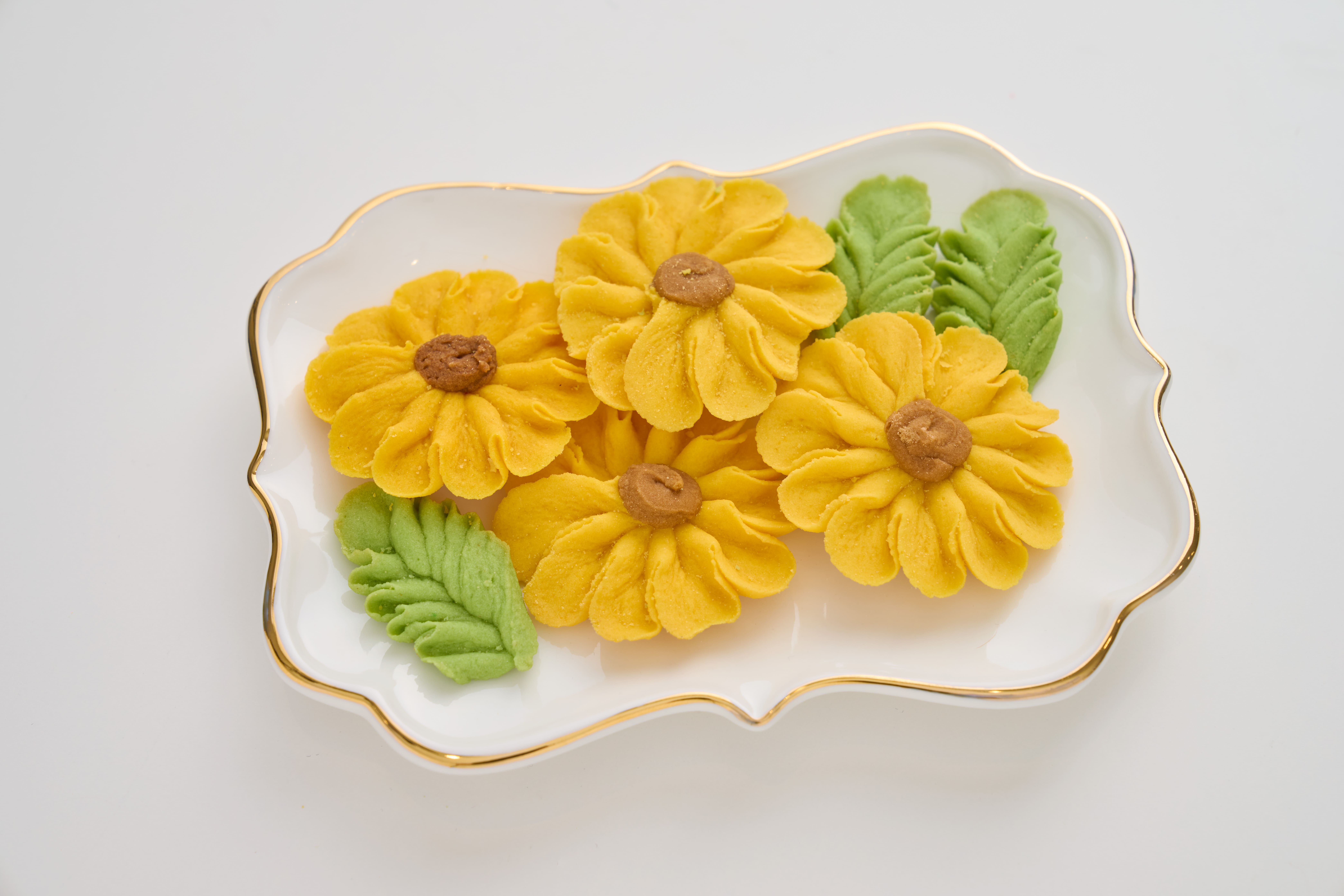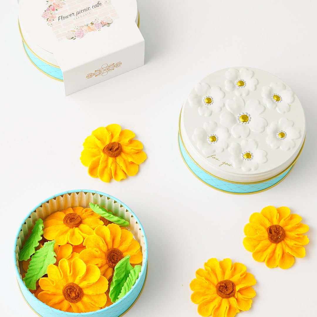 白とブルーのお花の缶を開けると、可愛くて美味しいさくさく『お花のぼうろ』