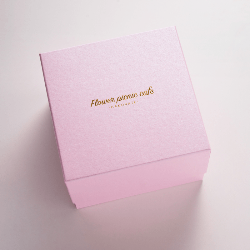 専用BOXはお花をそっと優しく包み込むパールピンクでアレンジ。