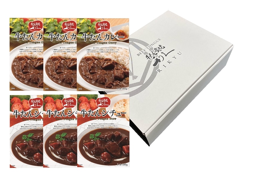 人気牛たんカレーと牛たんシチューの詰合せです。ご家庭で利久の味をお楽しみください。