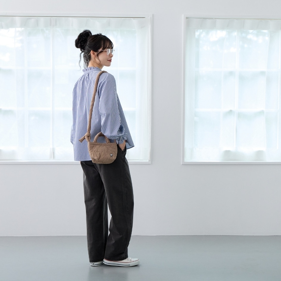 ショルダーはお好きな部分で結んでいただく事で長さ調整が可能です。