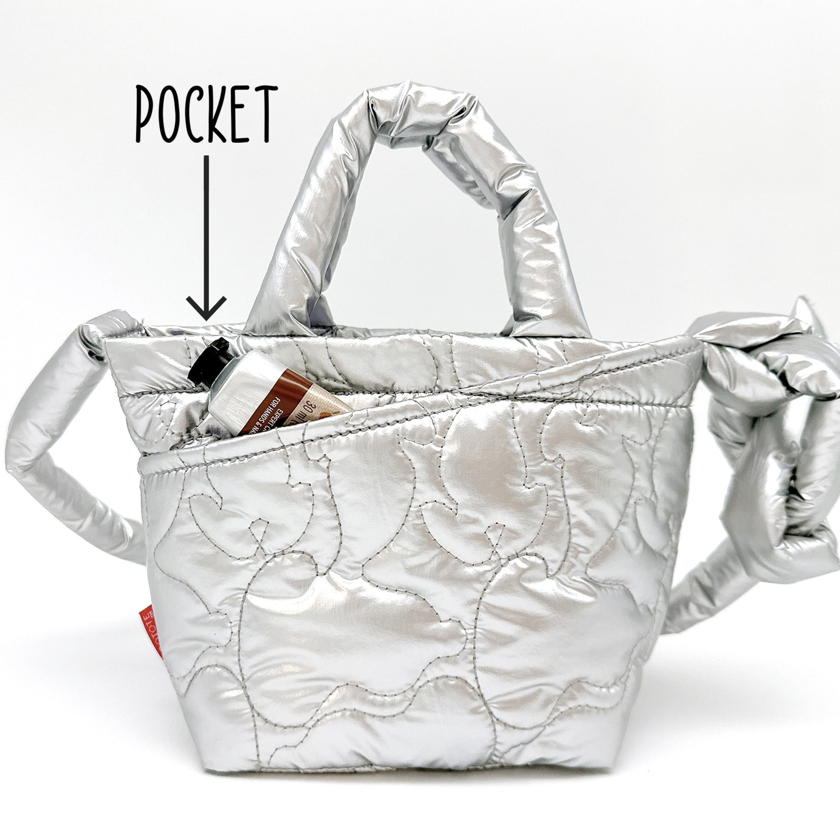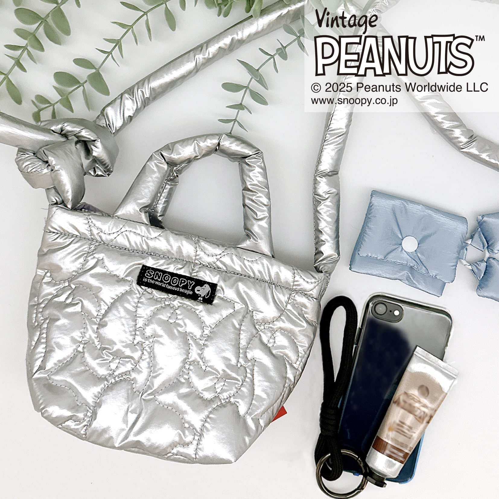 丈夫なナイロン生地に、スヌーピーのシルエットのキルティング加工を施しました。