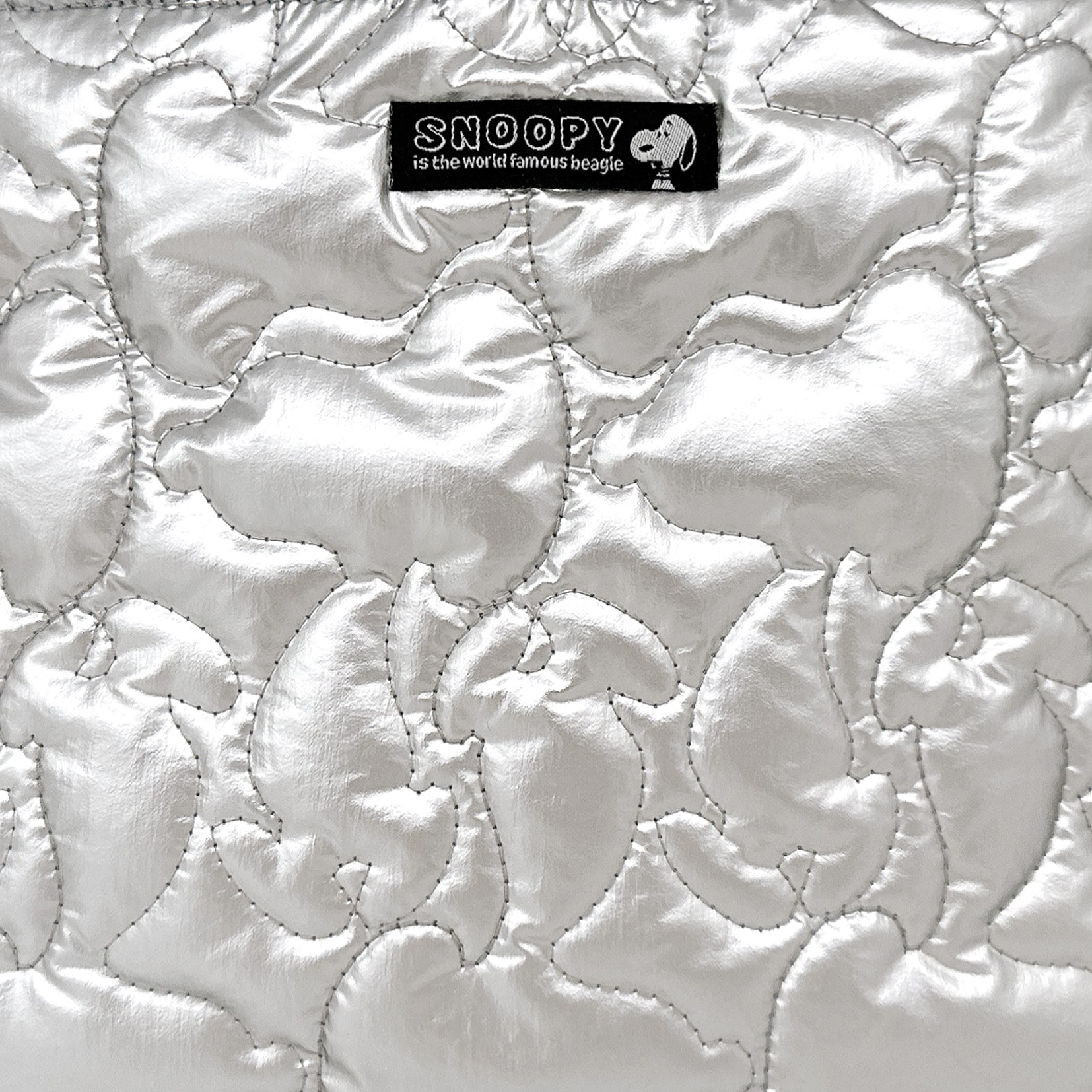 丈夫なナイロン生地に、スヌーピーのシルエットのキルティング加工を施しました。