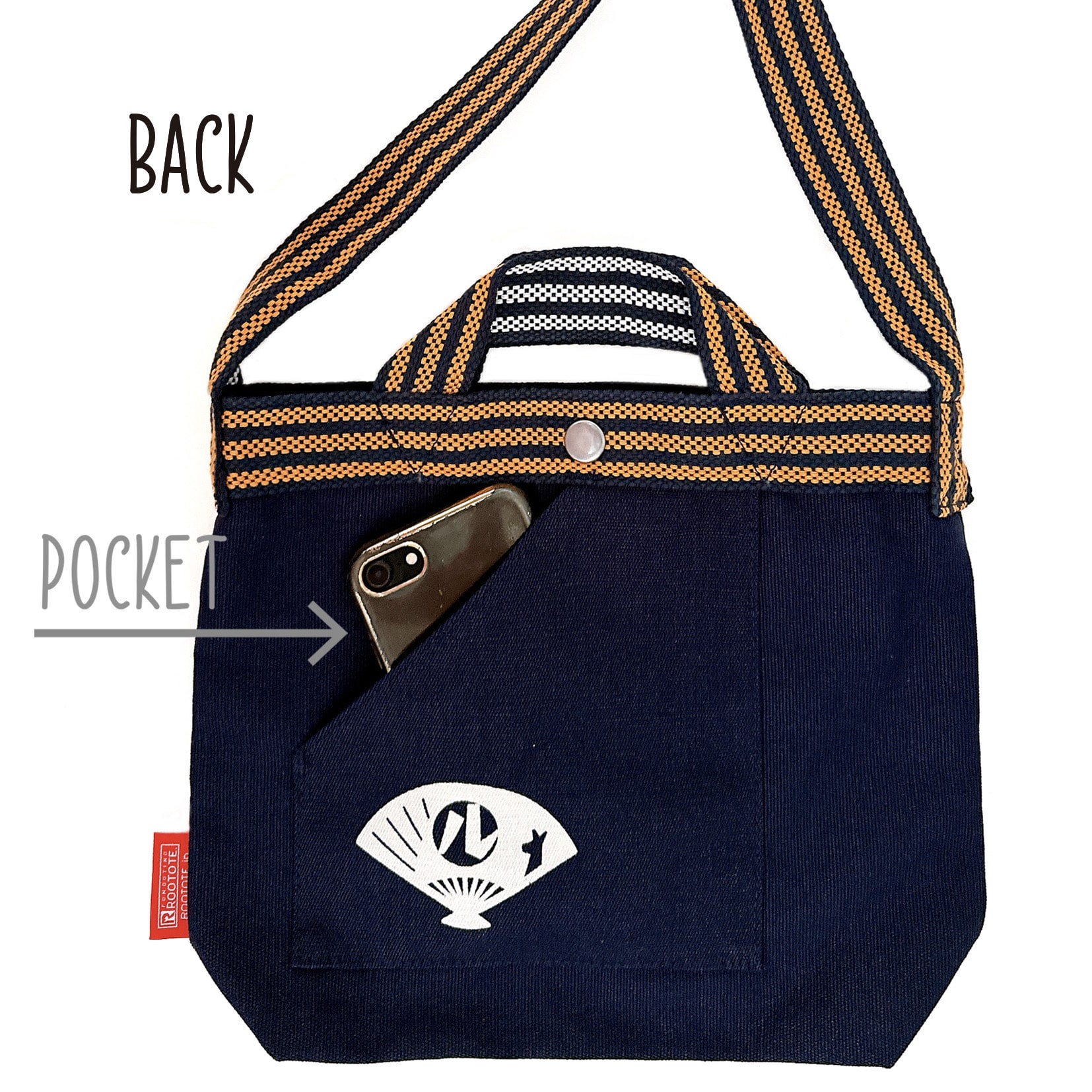 背面のルーポケットは、すぐに取り出したいハンカチやスマホなどの収納に便利。