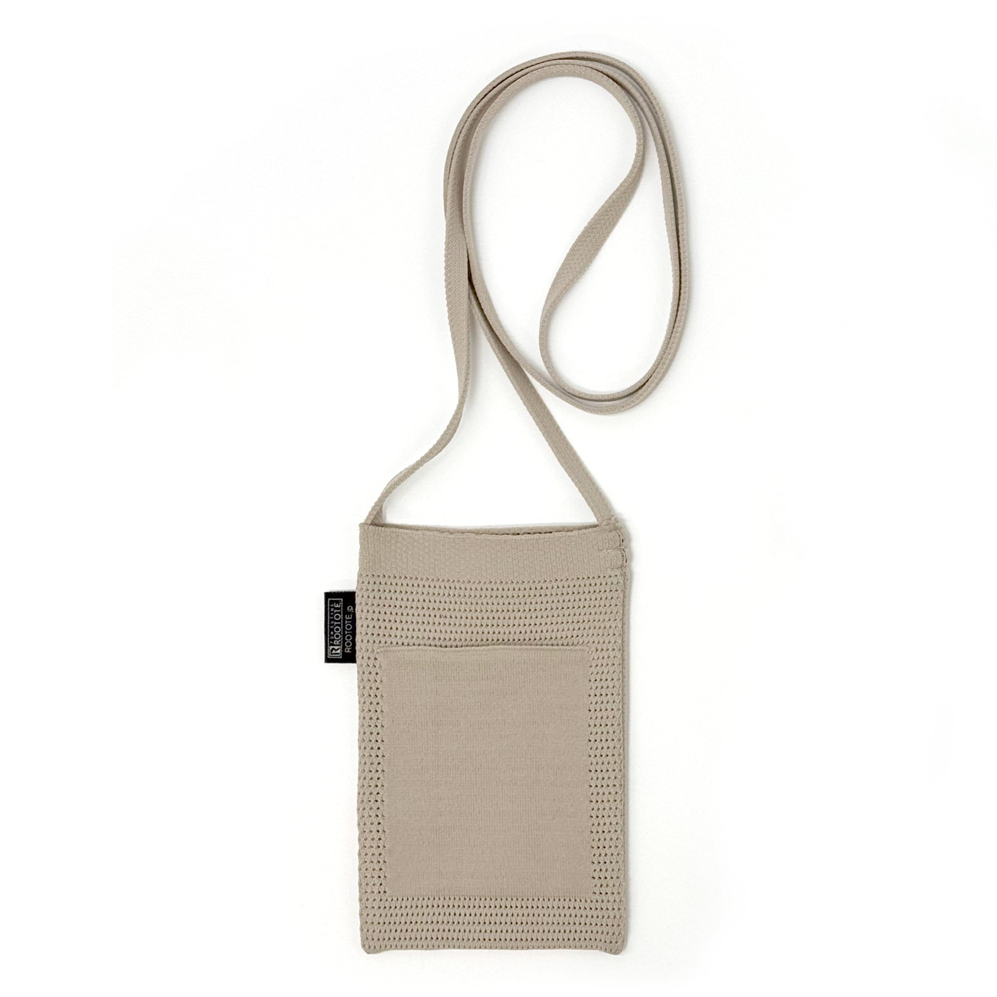 小物の収納に便利なルーポケットは、本体と一体で編まれているので、縫い目がないつくり。