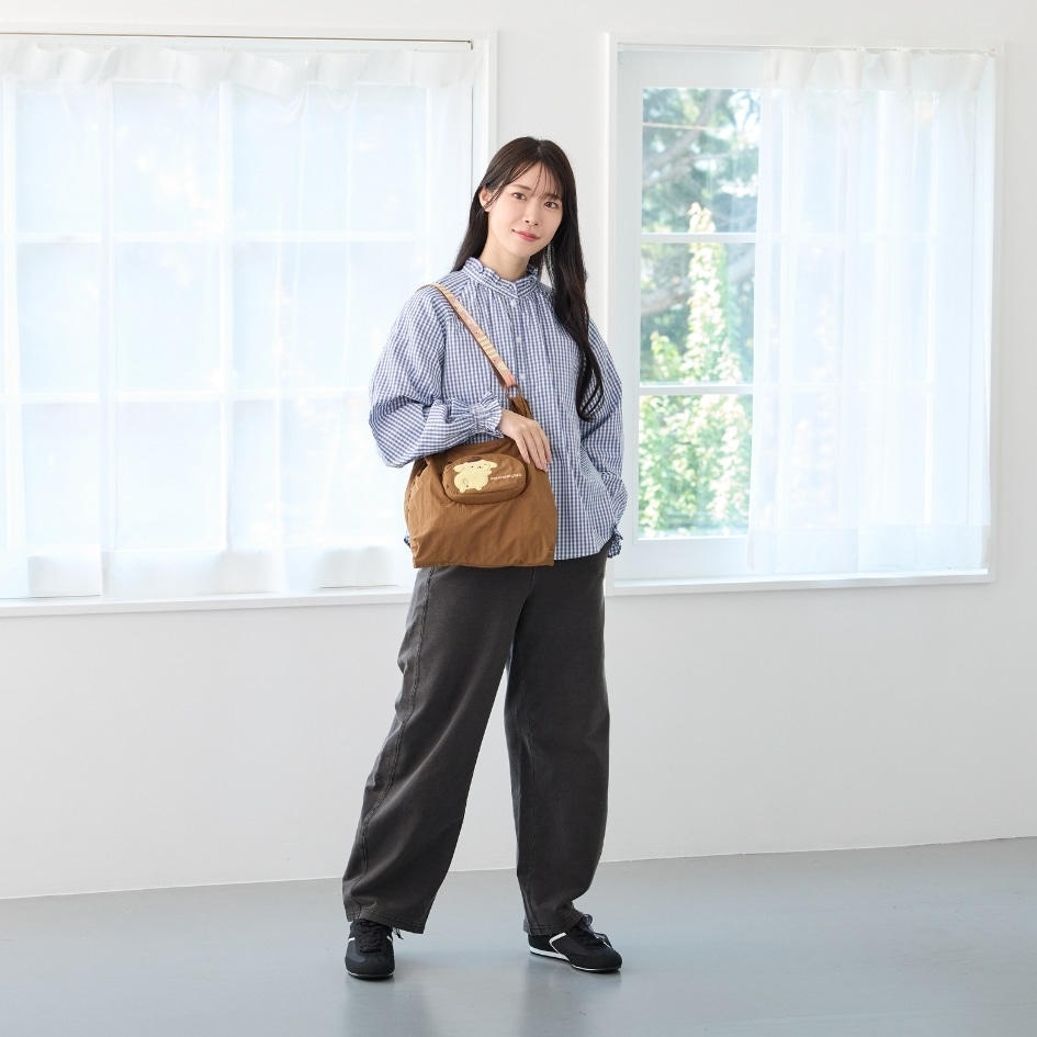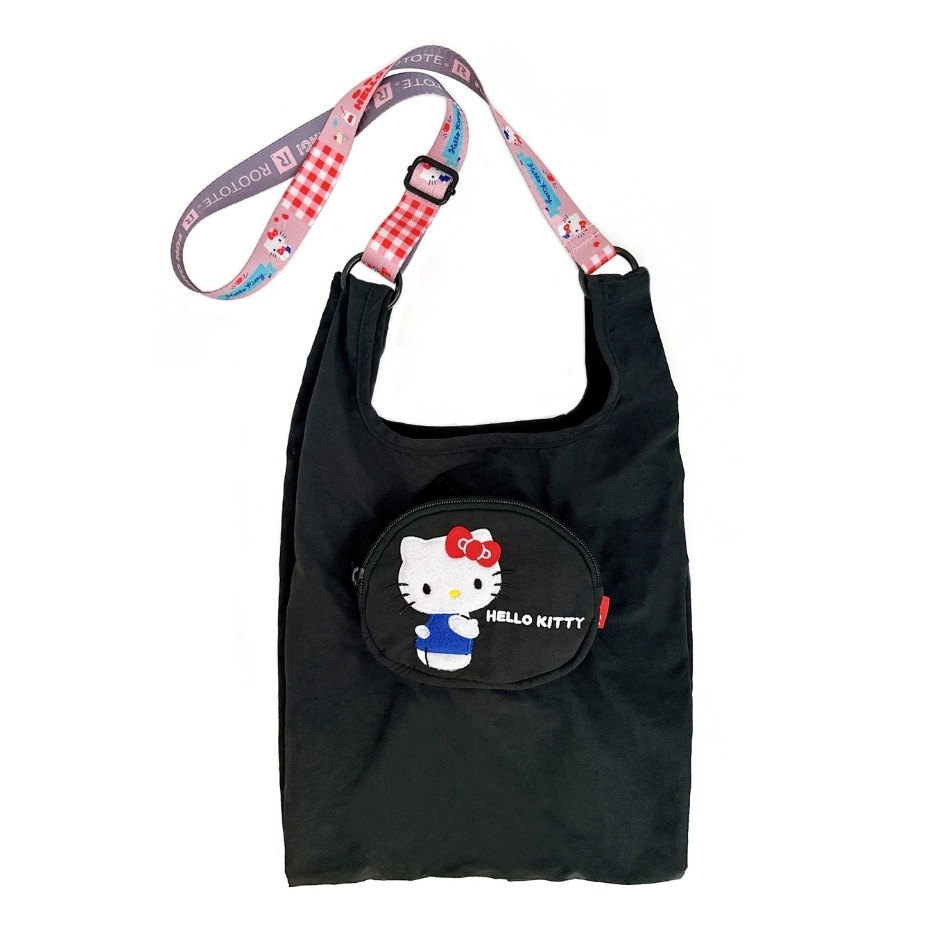 振り向きポーズがキュートなキャラクター刺繍入りポケットがポイントのショッパーバッグ。