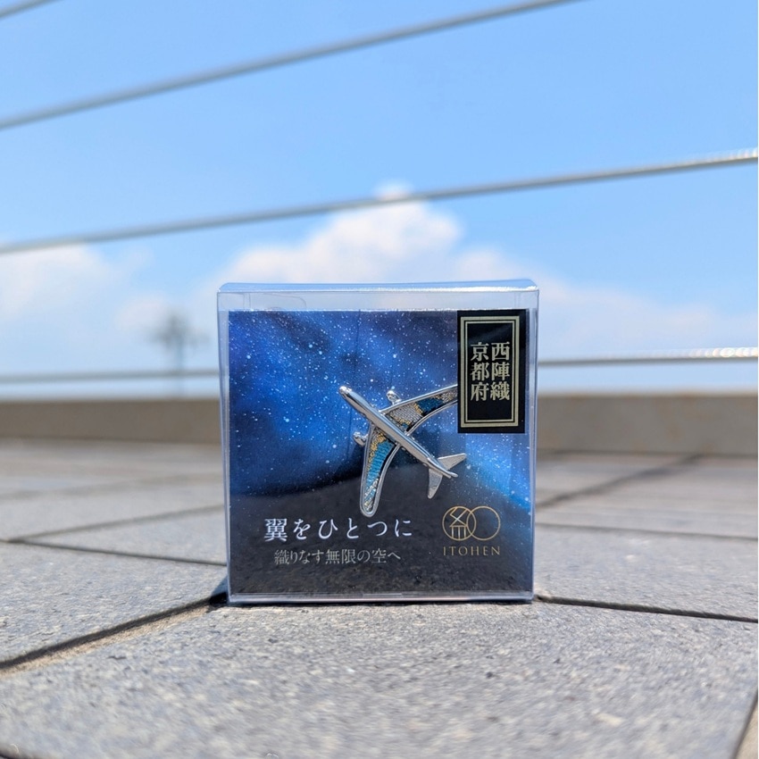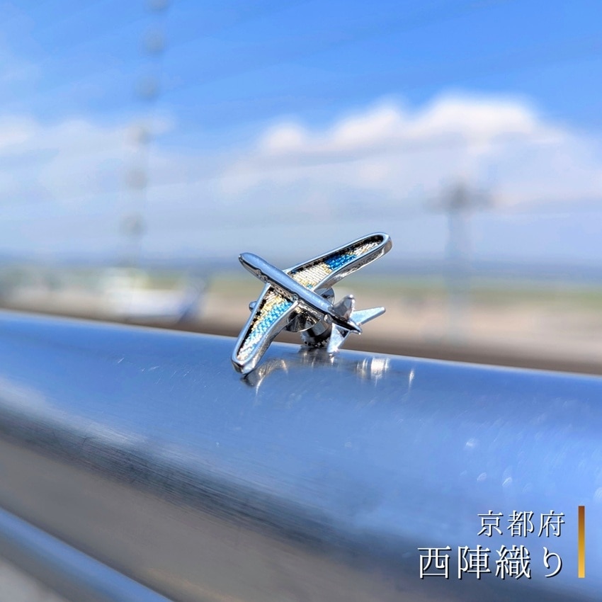 日本各地の伝統織物の端切れを翼に使用した、飛行機型のピンバッジです。
