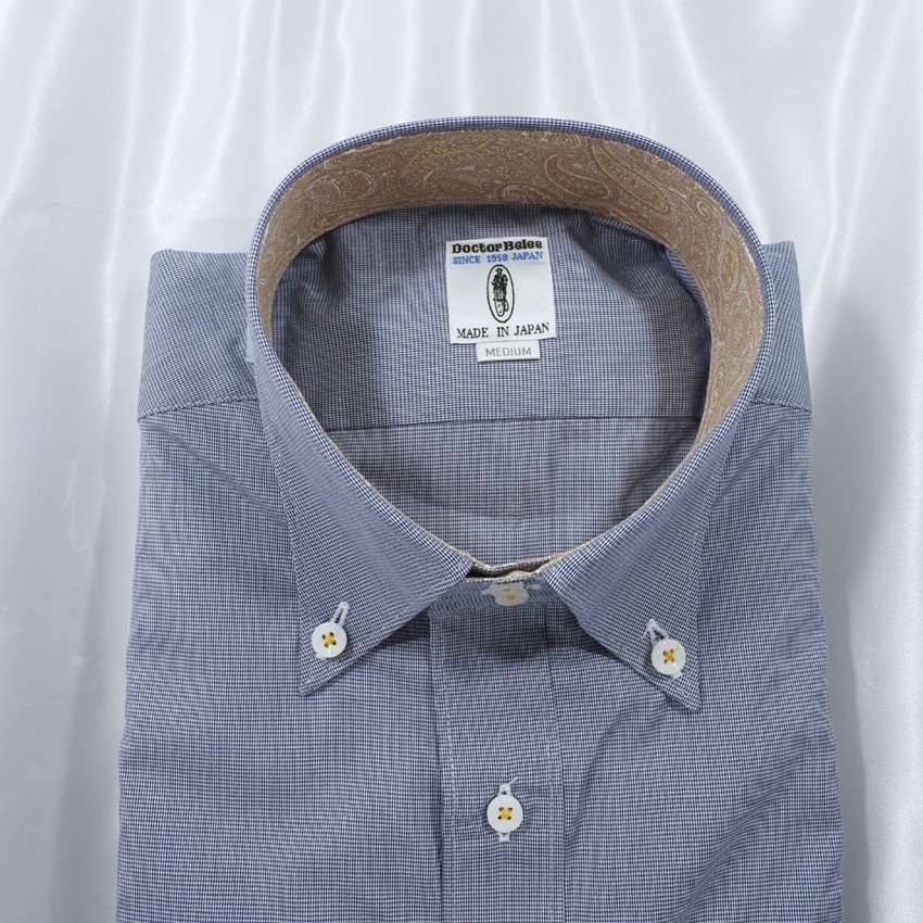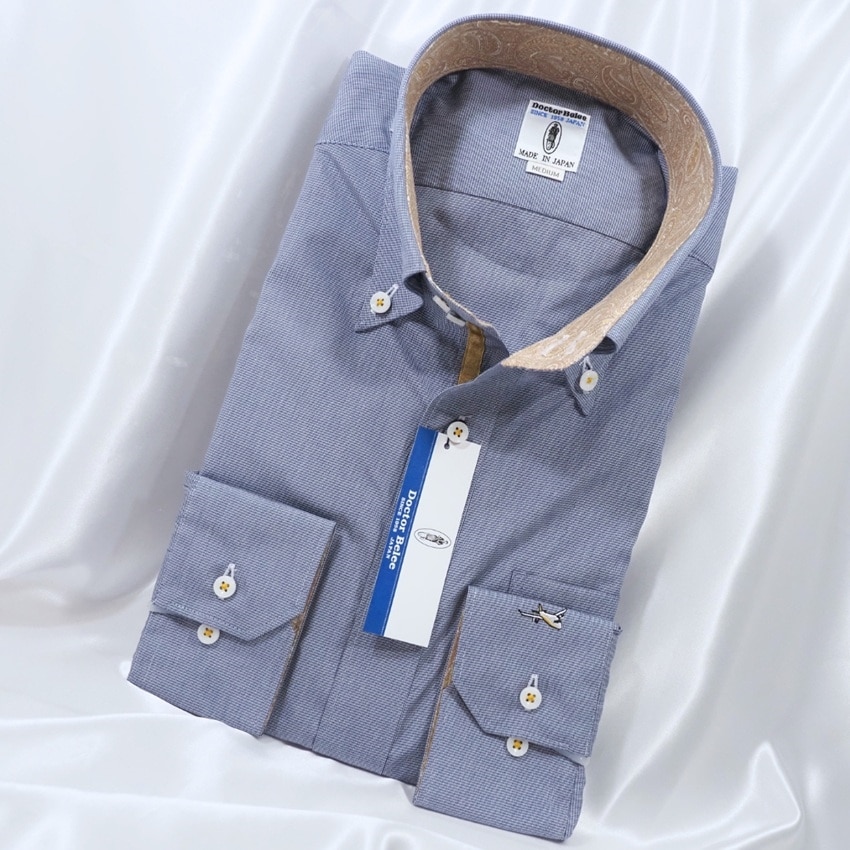 飛行機のワンポイントを入れ羽田空港らしいデザインにこだわりました。こちらの商品が手に入るのはドクターベリー羽田空港店とHANEDAオンラインショップのみ。一つのデザインで約30枚しか作らない極小ロット生産になります。また店舗スタッフがデザイン企画をし、生地選びから裏地、釦、衿型など細部にこだわりデザインしております。素材も綿100%(80番手双糸以上)の高級綿を使用しており、優しく柔らかい着心地を追求しています。良質な素材、オリジナルデザイン、極小ロット生産、日本製。たくさんのこだわりを詰めた一枚です。