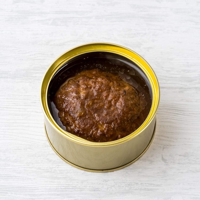 ・缶バーグ和風ソース(卵、小麦、牛肉、豚肉、りんご、大豆)