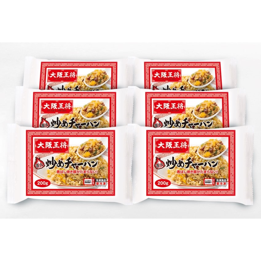 【商品説明文】大阪王将がおすすめするメニューの中でも代表するチャーハンのセット。醤油の味と風味を感じる、直火で炒めたチャーハンです。電子レンジで調理できる、お手軽タイプ。