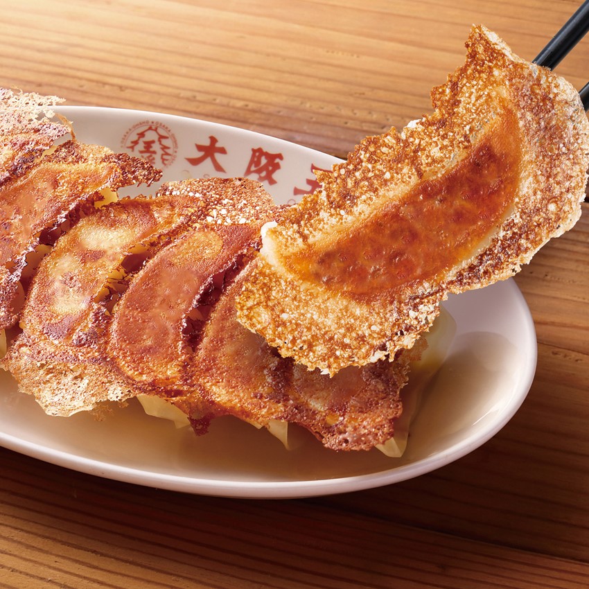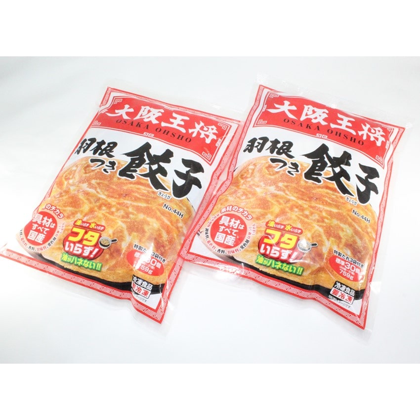 【商品説明文】大阪王将のメニューの中でも人気の餃子をご家庭で。国産の豚肉と野菜を使用し、コクがあり、食べやすく飽きの来ない味に仕上げました。具材のジューシーさをもちもち食感の皮に閉じ込めパリッとした羽根の食感と相性抜群の商品です。油も水もふたもいらないお手軽タイプ。