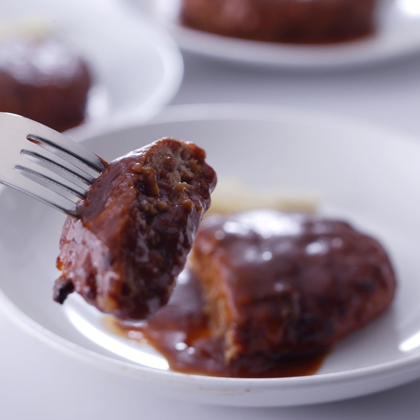 【商品説明文】神戸牛を使用し仕上げたハンバーグをスチームオーブンで焼き上げ、最後にデミグラスソースを絡めました。