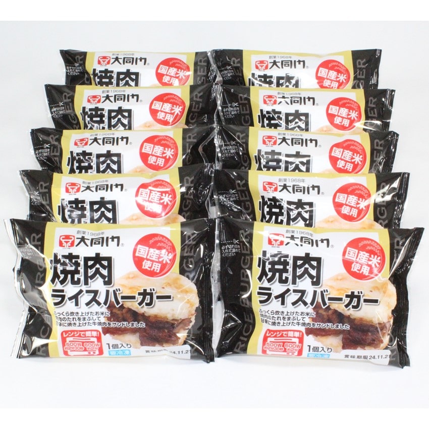 【商品説明文】創業1968年の老舗焼き肉店大同門監修のライスバーガー。秘伝のたれで味付けしたお肉を、ご飯の上でたれをちょんちょんとバウンディングさせたイメージの見た目、国産米使用のふんわりと仕上げた、ライスパテでサンドしました。
