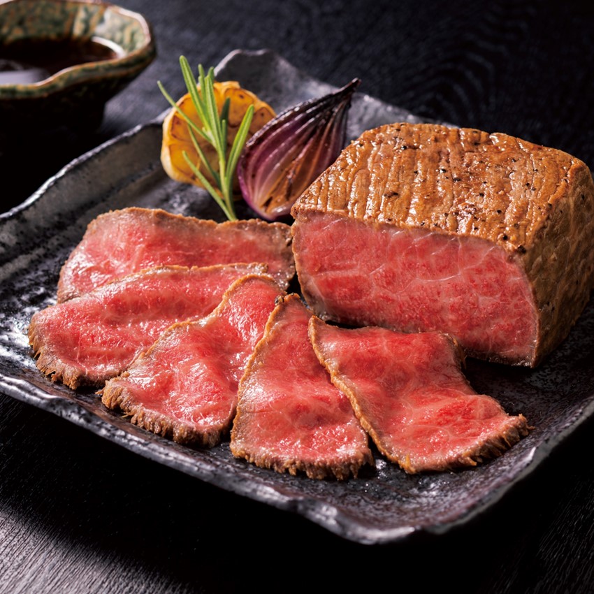 塩と胡椒だけで、素材の旨味を引き出す鎌倉山の独自の技法でじっくり焼き上げた脂身を抑えたモモ肉は、赤身の深い黒毛和牛を使用した風味が際立ち、ひと口ごとに感動をもたらします。特製ソースと西洋わさびが引き立てる、洗練された贅沢な一皿をお楽しみください。