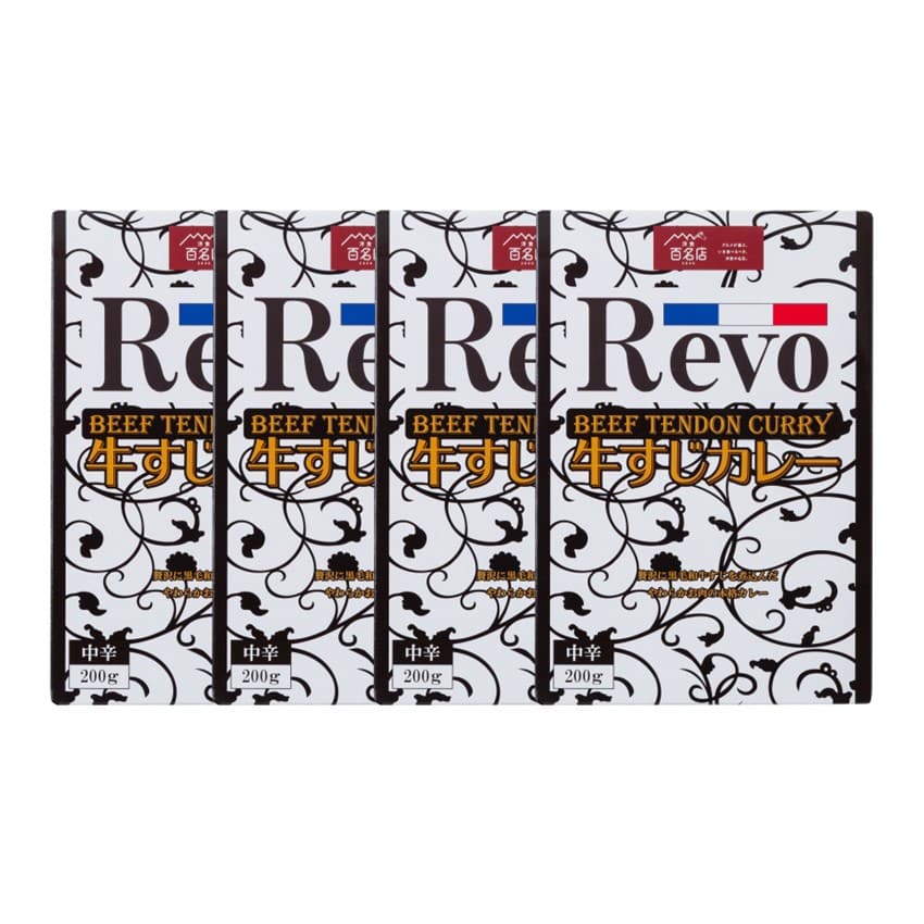 【商品説明文】黒毛和牛一頭買いで有名な人気洋食店「Revo」の上質の黒毛和牛すじのみをじっくり煮込んだカレーです。絶妙なスパイシーさと黒毛和牛すじから出るコクがたまりません。お店の味を追求し、試作を繰り返し完成させました。本格洋食店のカレーの味をご家庭でお召し上がりいただけます。