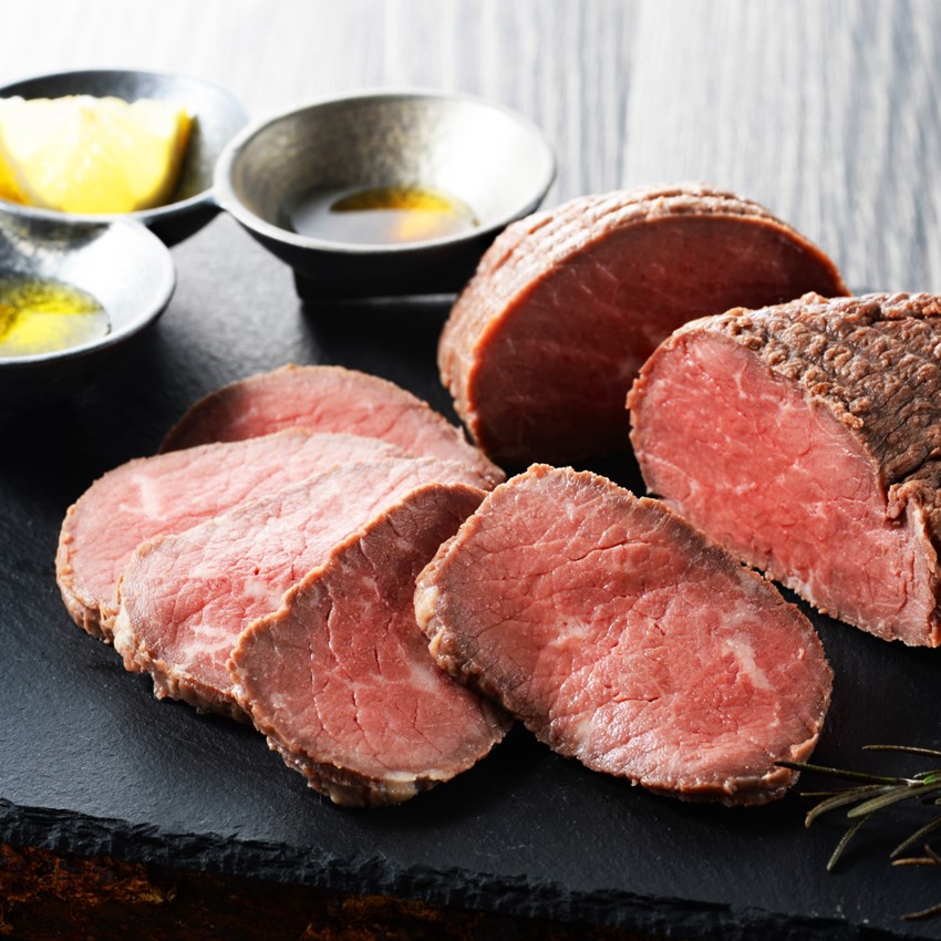 【商品説明文】赤身肉が美味しい牛もも肉に塩をすり込み、ひとつひとつ丹念に表面を焼き上げました。低温でじっくりと加熱することで柔らく仕上がっております。