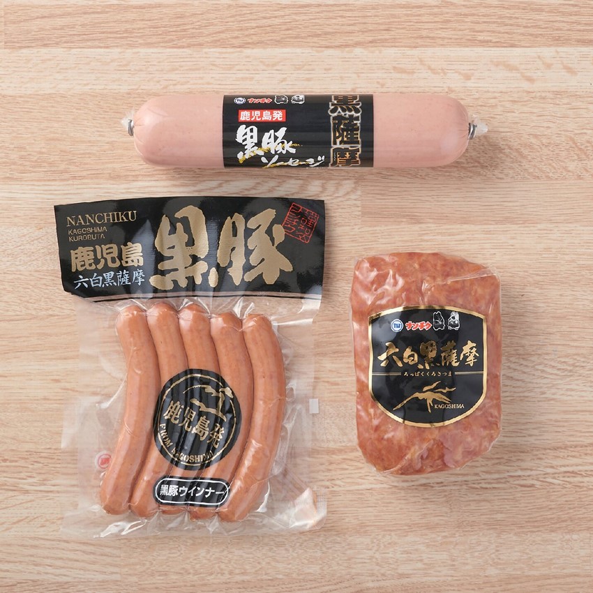 【商品説明文】鹿児島県産黒豚を使用したウインナー・ソーセージのセットです。黒豚の旨みをお楽しみください。