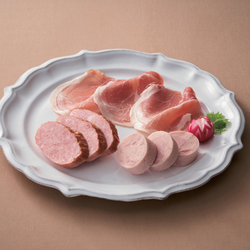 ■内容量:ポークローフ・ポークソーセージ各200g、生ハムスライス50g