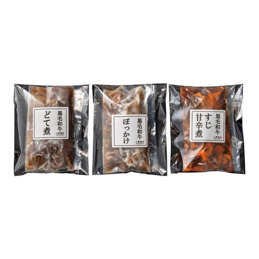 ■内容量:黒毛和牛どて煮150g、黒毛和牛ぼっかけ150g、黒毛和牛すじ甘辛煮150g