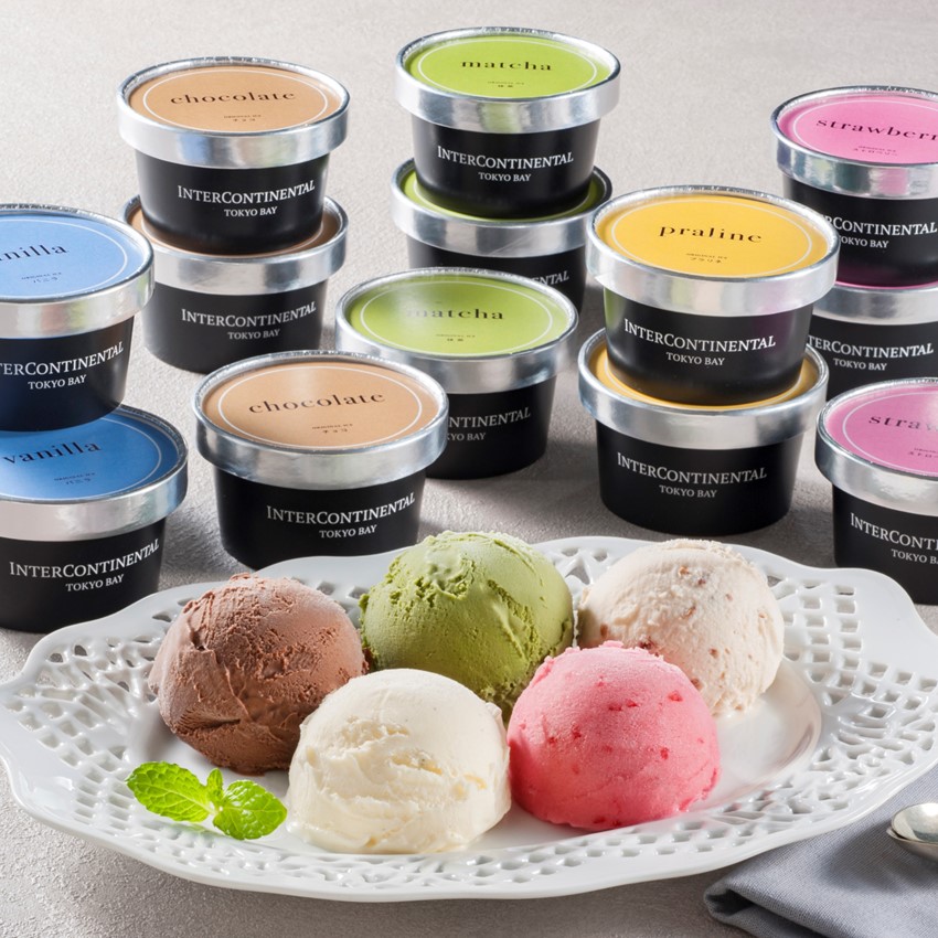 【商品説明文】素材の味が引き立つよう作りあげたなめらかな口どけのアイス。定番のバニラの他に、シェフおすすめのプラリネなど5種類のフレーバーをセットにしました。