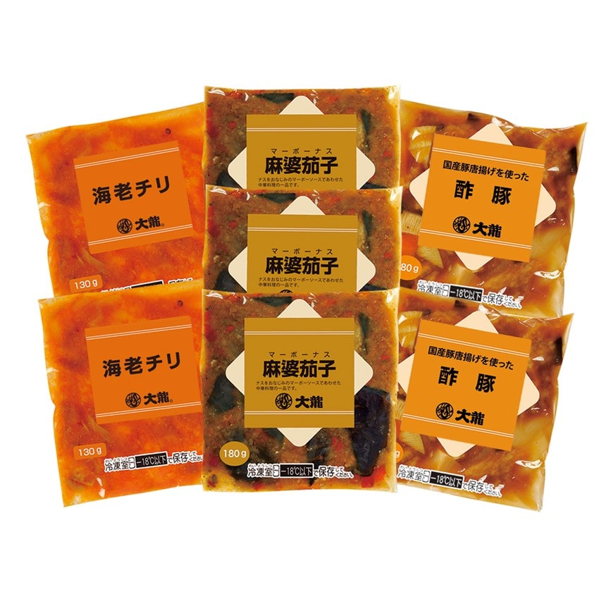 ■ 内容量:海老チリ130g×2、麻婆茄子180g×3、酢豚180g×2