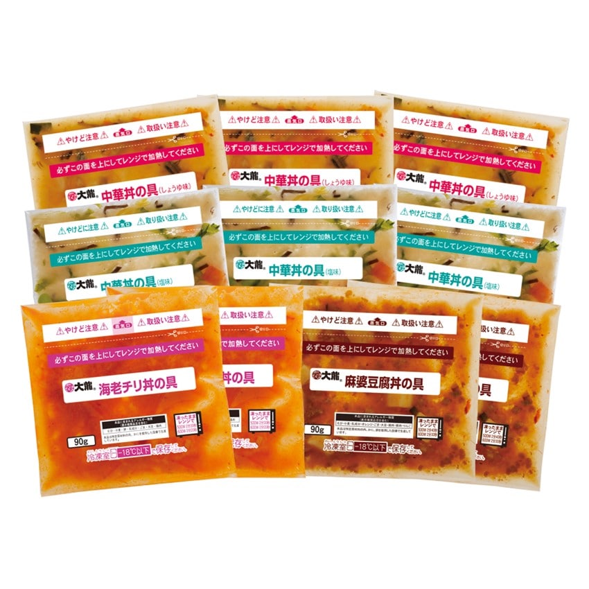 ■ 内容量:中華丼の具(塩味)90g×3、中華丼の具(しょうゆ味)90g×3、麻婆豆腐丼の具90g×2、海老チリ丼の具90g×2