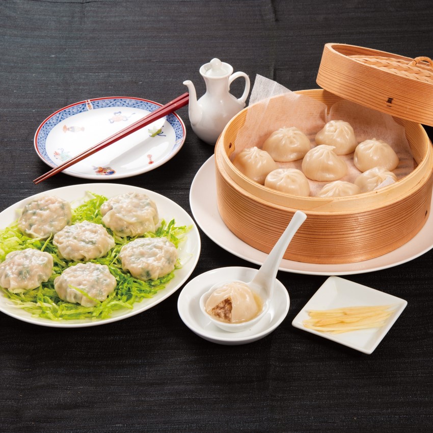 【商品説明文】あふれるスープが楽しめる小籠包と、ニラの香りが食欲そそるニラ蒸し餃子です。