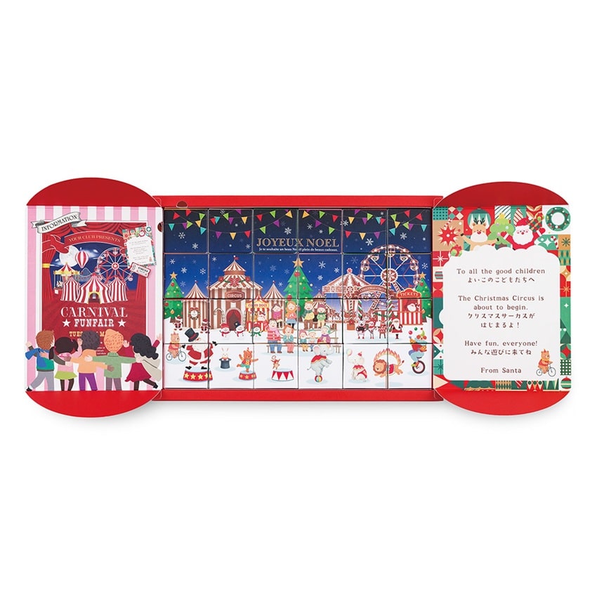 絵本仕立てでおつくりしているXmasカレンダー、観音扉を開けてみると12/24までのカレンダーになっています。