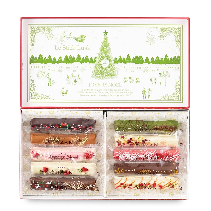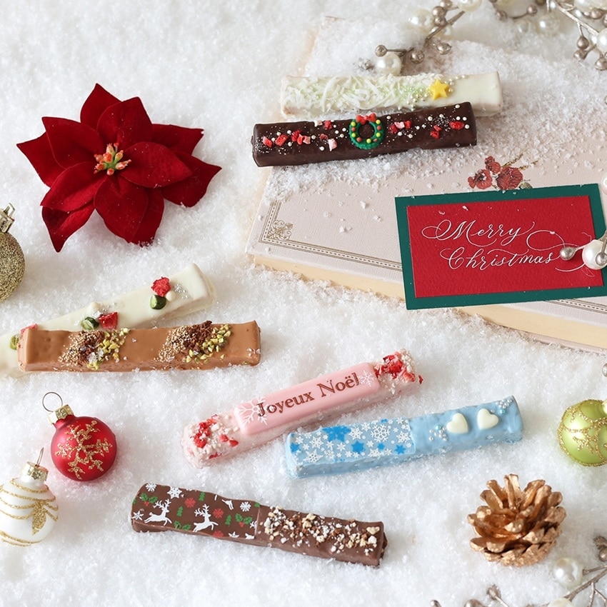 スティックラスクのプレート「Joyeux Noel」はフランス語でメリークリスマスの意味。