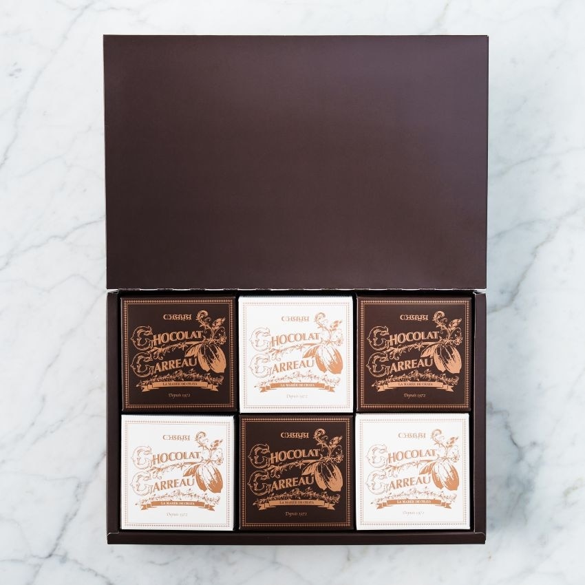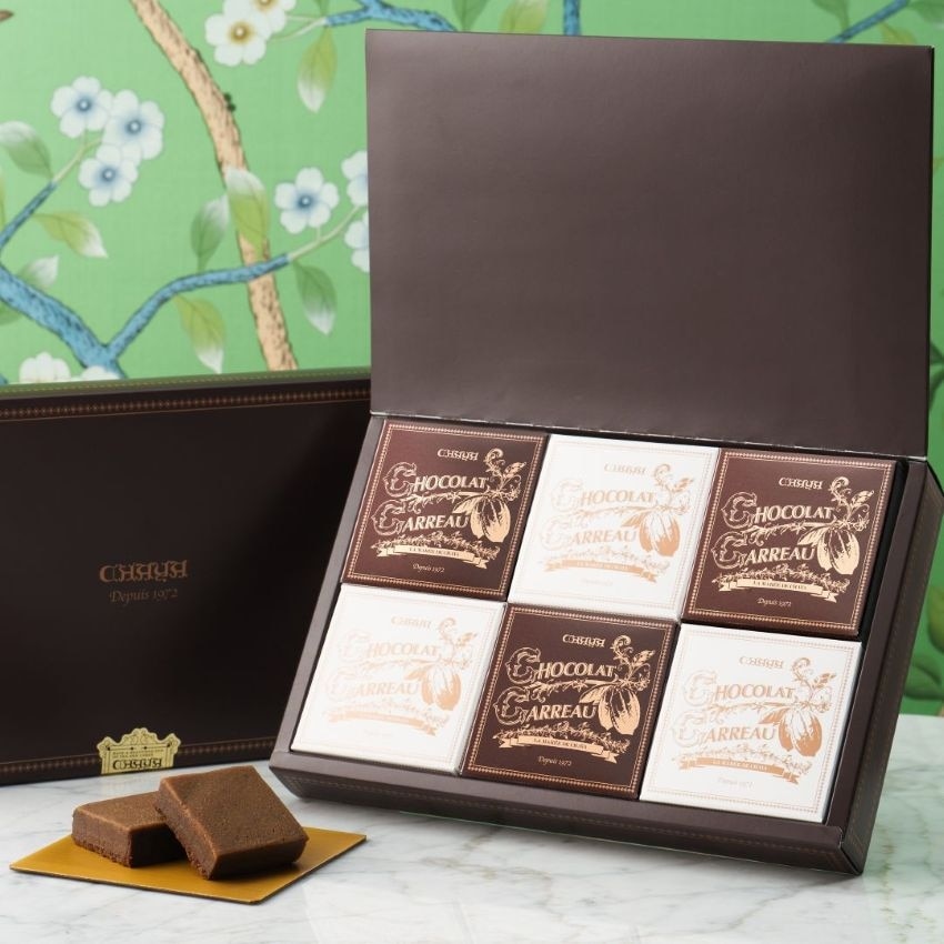 ヨーロッパの街並ある板瓦のような、かわいい四角いガトーショコラのアソートです。