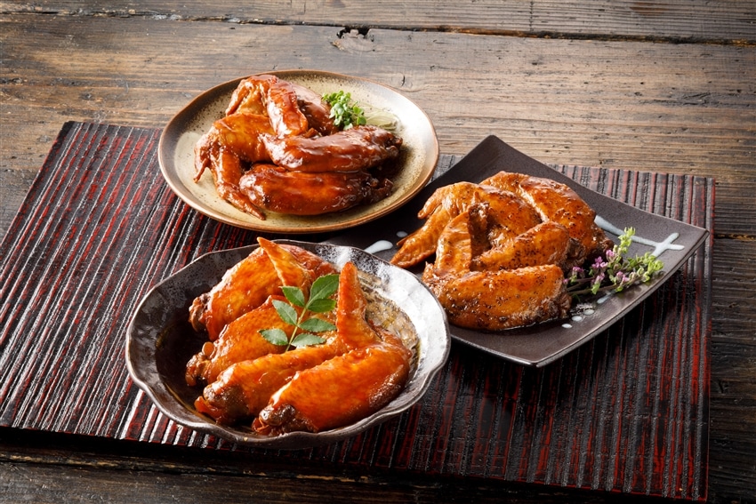 手羽先煮込みの3つの味がセットになりました。