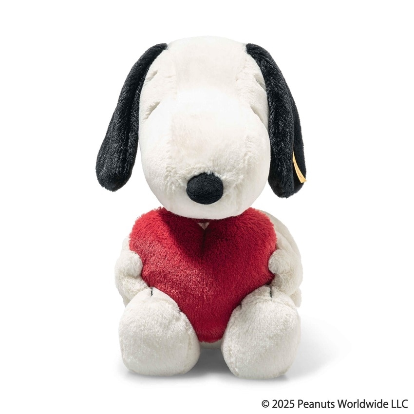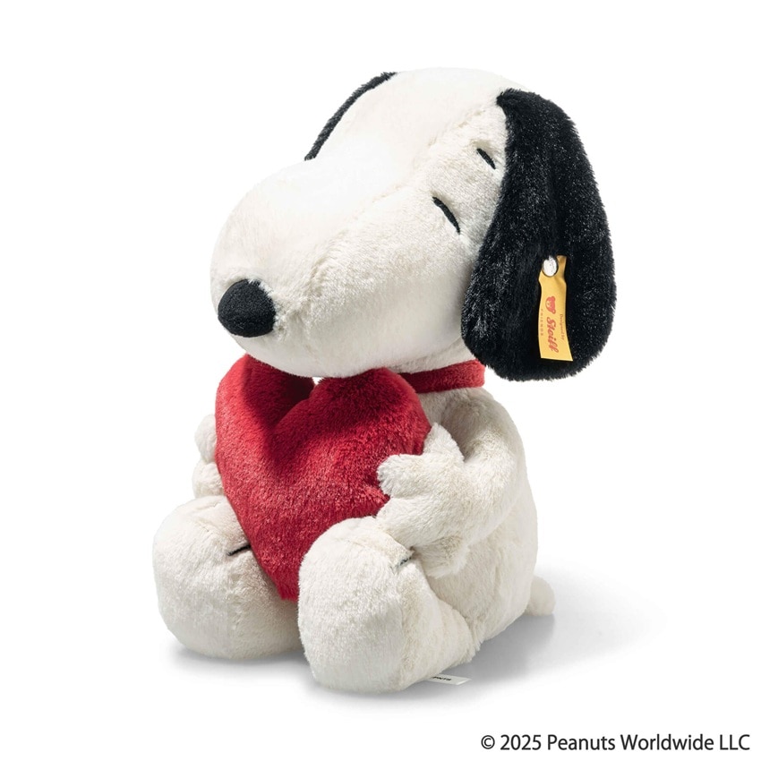 30cmの大きさで仕立てられたこのスヌーピーは、ふんわり柔らかなプラッシュ素材でできており、その両手には“ハート”を抱えています。