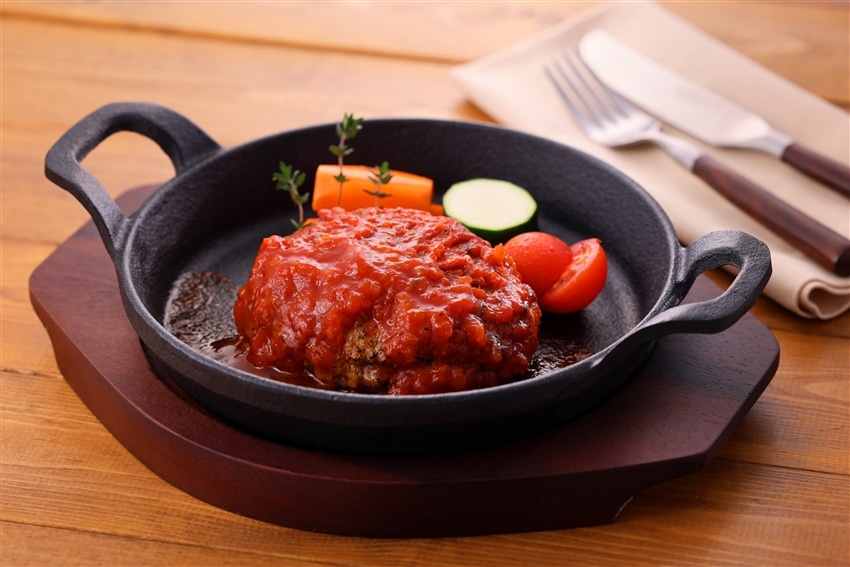 <牛たんハンバーグトマトソース>小麦・牛肉・大豆・鶏肉・豚肉