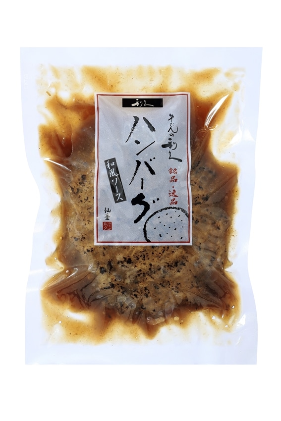 <牛たんハンバーグ和風ソース>小麦・牛肉・鶏肉・大豆・豚肉・りんご・魚醤(魚介類)
