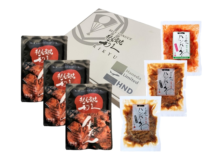 牛たん専門店【牛たん炭焼利久】の定番しお味の3人前と、利久で人気の食べ応えのある牛たんハンバーグ3種で簡単に豪華なディナーとしてお楽しみいただけます。