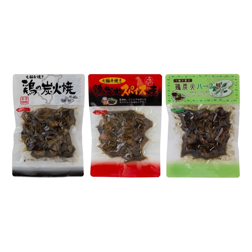■ 内容量:鶏の炭火焼180g×1、鶏炭火ハーブ焼150g×1、鶏炭火スパイス焼150g×1
