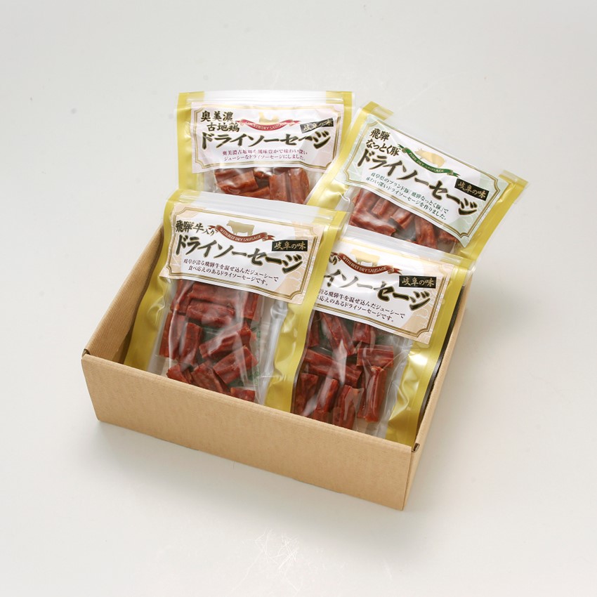 ■ 内容量:飛騨牛入りドライソーセージ40g×2、飛騨なっとく豚ドライソーセージ50g×1、奥美濃古地鶏ドライソーセージ50g×1