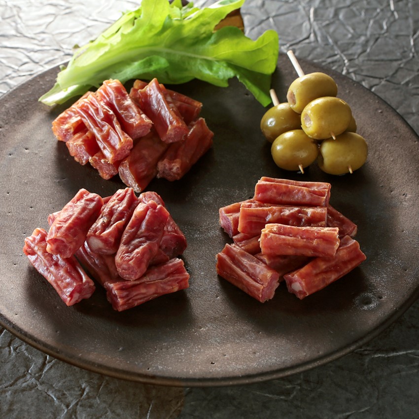 岐阜県が誇るブランド牛「飛騨牛」を使用したドライソーセージ、岐阜県のブランド豚「飛騨なっとく豚」で作ったドライソーセージ、岐阜県の地鶏である「奥美濃古地鶏」で作ったドライソーセージの3種セットです。熟成期間を長く取ることで肉が持つ本来の旨みを引き出しました。乾燥することによって凝縮された旨みと、しっかりとした歯応えを楽しめる昔ながらの製法で作り上げたこだわりの商品です。