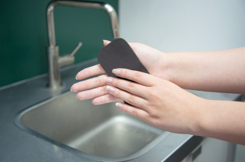 折りたたみサイズのシート型タオル。外出時の水滴ストレスを低減します。