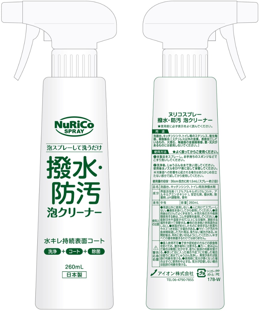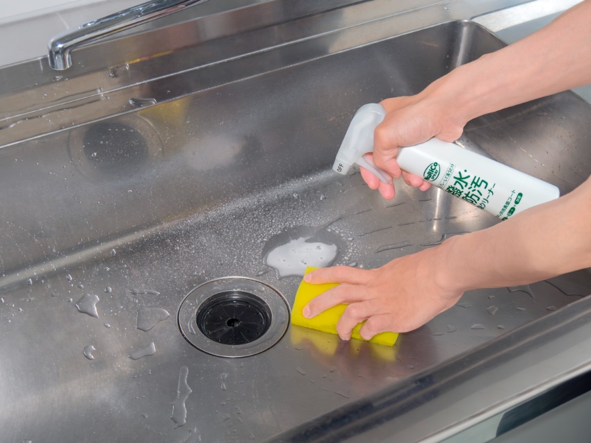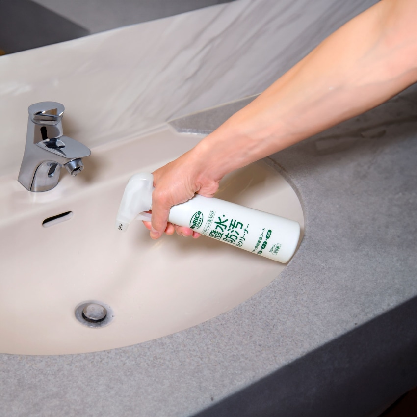 スプレーして洗うだけ!洗面台・トイレ・キッチンシンクなどの水まわりの撥水・防汚コーティング剤です。