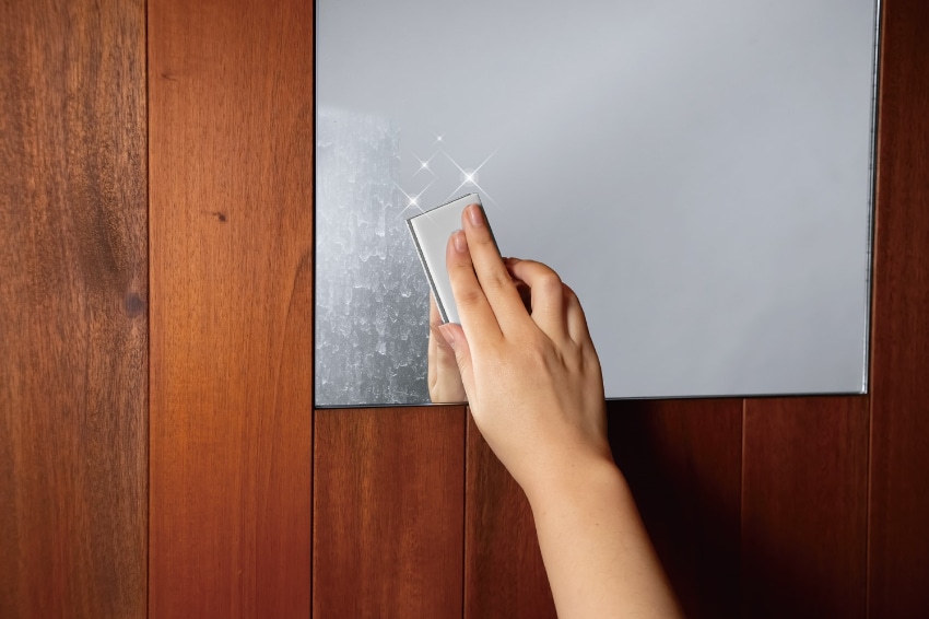 水を付けてこするだけで、頑固な「鏡、ガラス等のウロコ状水垢汚れ」もスッキリ落す事が出来ます。