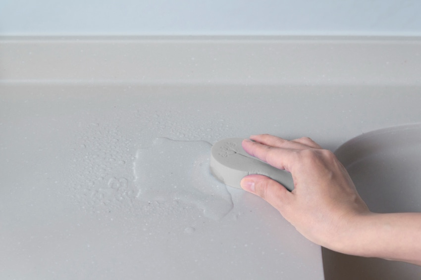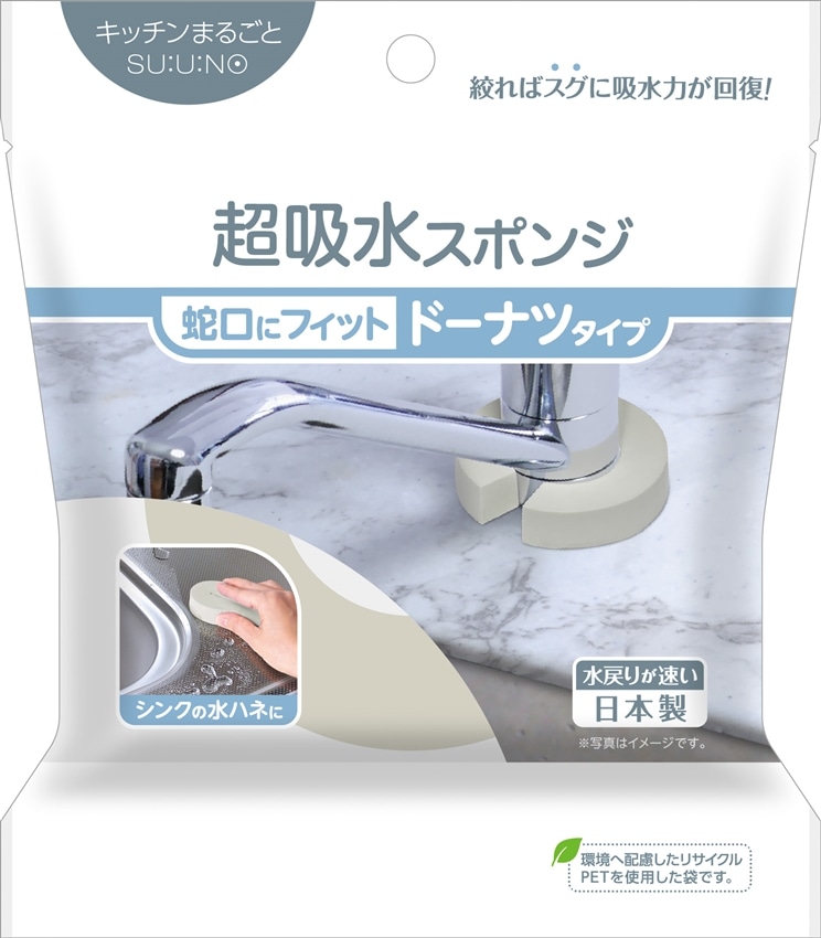 水滴をスパッと拭取り、絞れば元の吸水力が戻る超吸水スポンジを、キッチンで使いやすいサイズにしました。