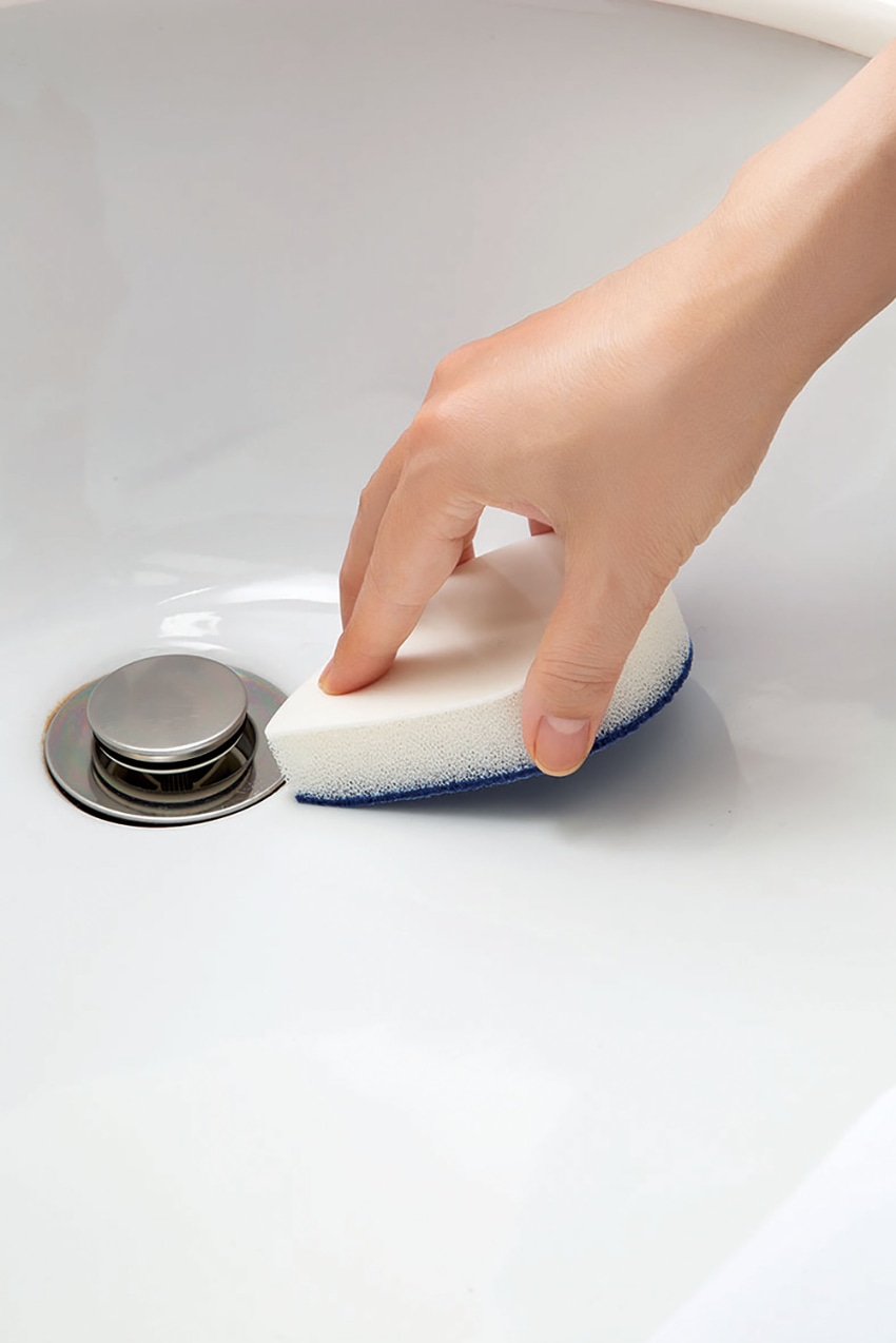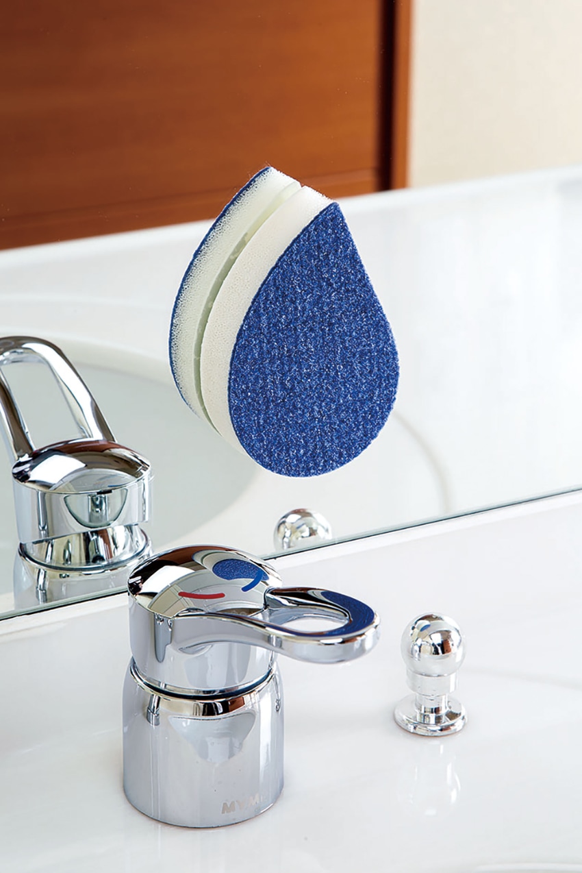 フッ素加工がされており磨くたびに汚れがつきにくくなります。使わないときは貼りつけて保管できます。